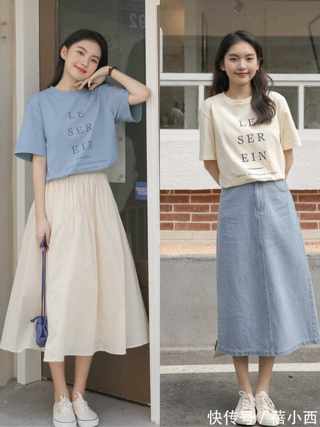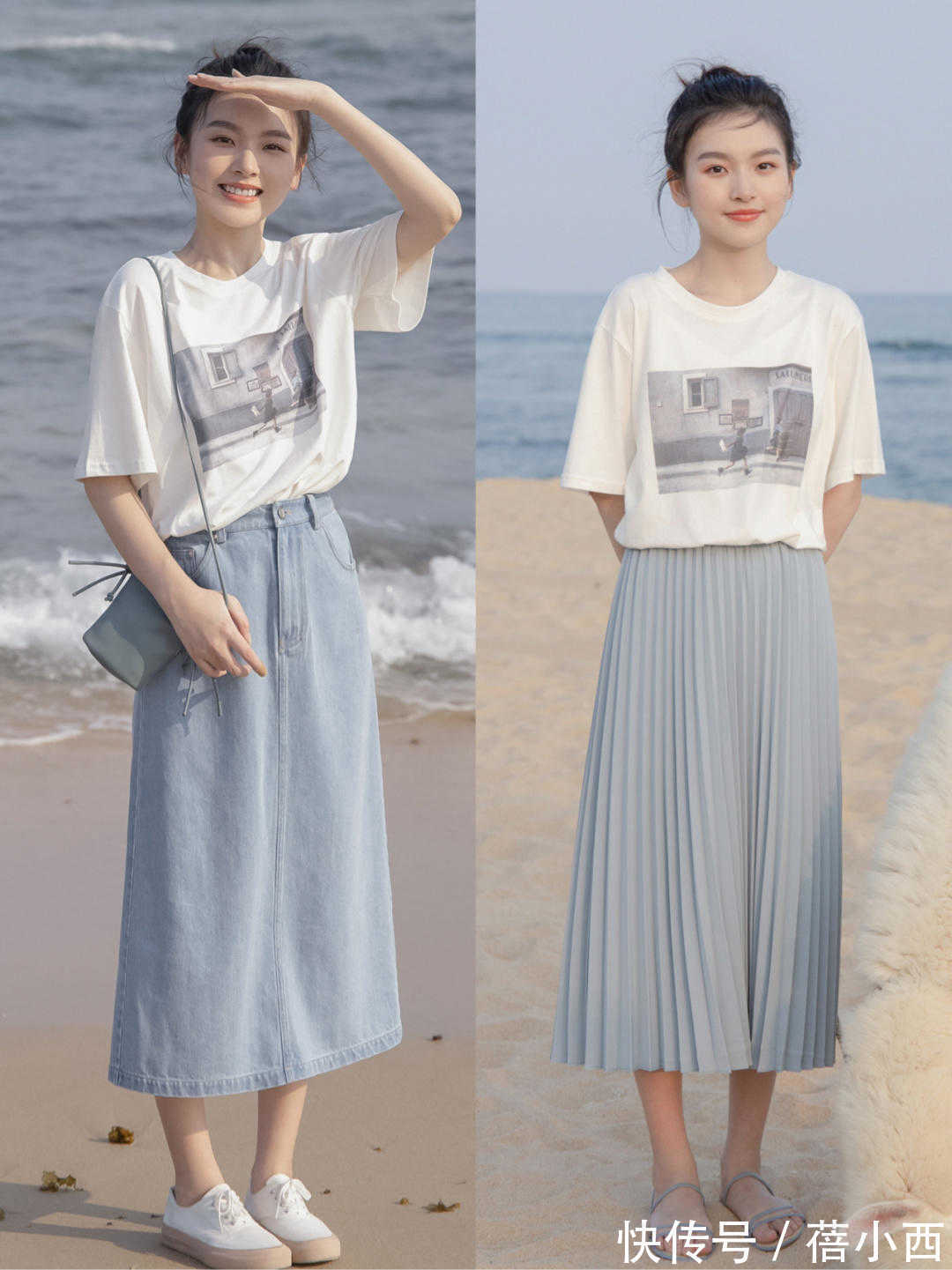 超实用“半身裙”穿搭示范,配T恤、衬衫、针织