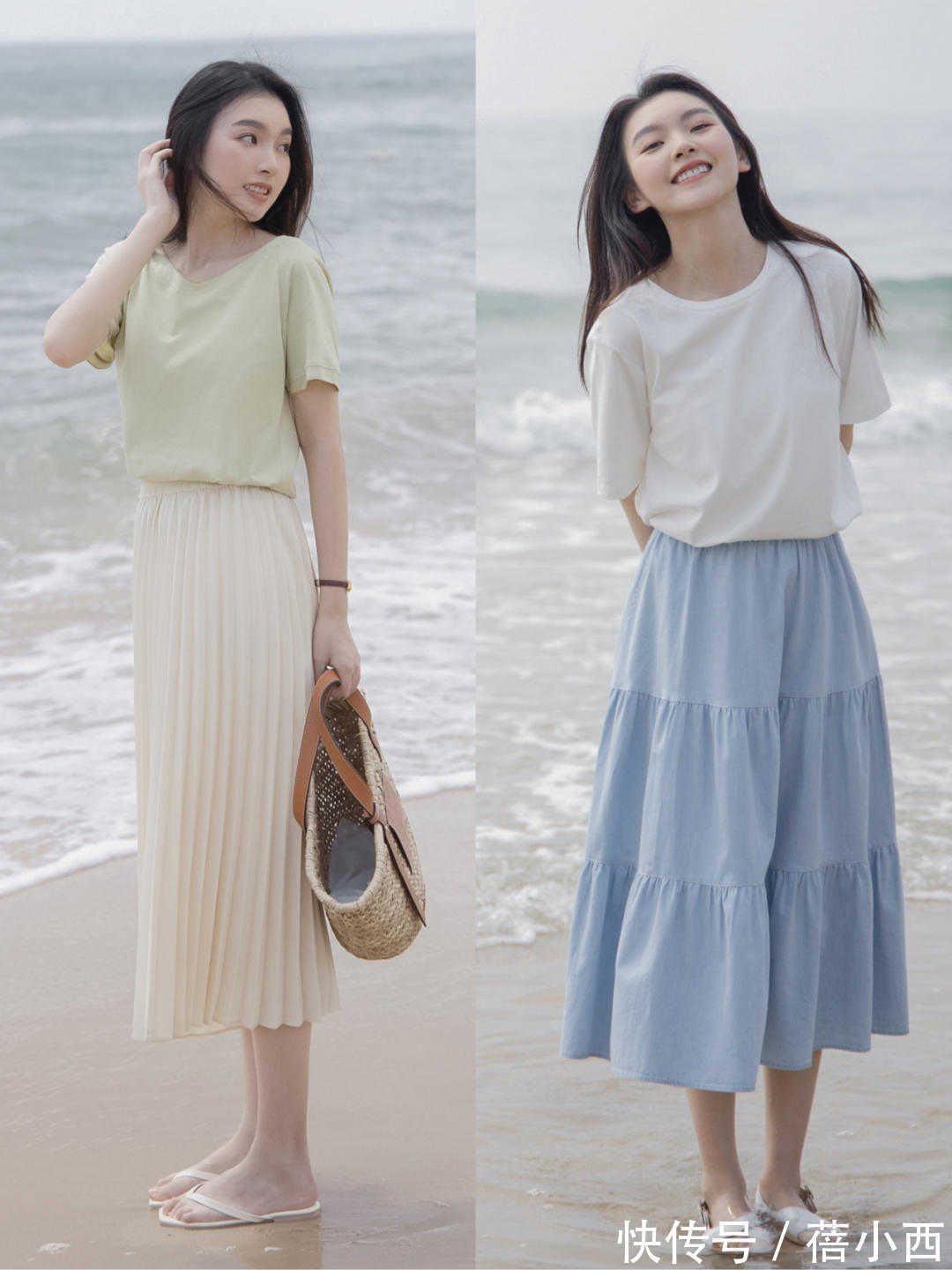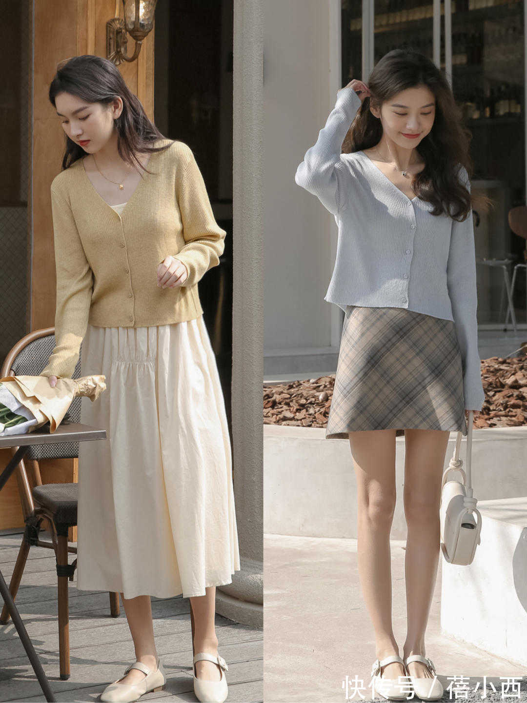 对于普通人来说,选裙子关键就是选裙装的长度,合适的长裙穿在身上可以给气质加分。对于普通人来说,选择长裙会更有利于遮肉,而且相对来说比较显瘦,但是如果你身材好且属于小个子,你可能就更适合穿短裙,尤其是下面的对比就很明显,右边的短裙看上去比较轻盈,而左边的长裙看上去就成熟一些。