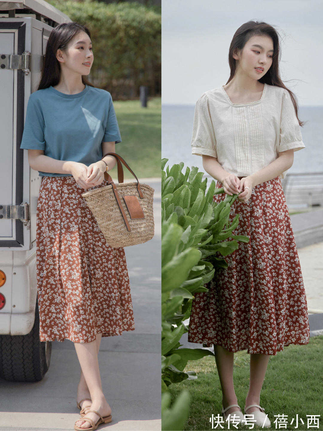 对于很多小姐姐来说,春天穿上一件时尚的碎花半身裙真的是再美好不过的事情。碎花的元素看上去清新浪漫,有利于减龄,整个人看上去也的确会显得优雅很多。普通人在穿裙装的时候就可以学习博主这种搭配,用各式各样的碎花元素去修饰,能够帮助你点亮穿搭。